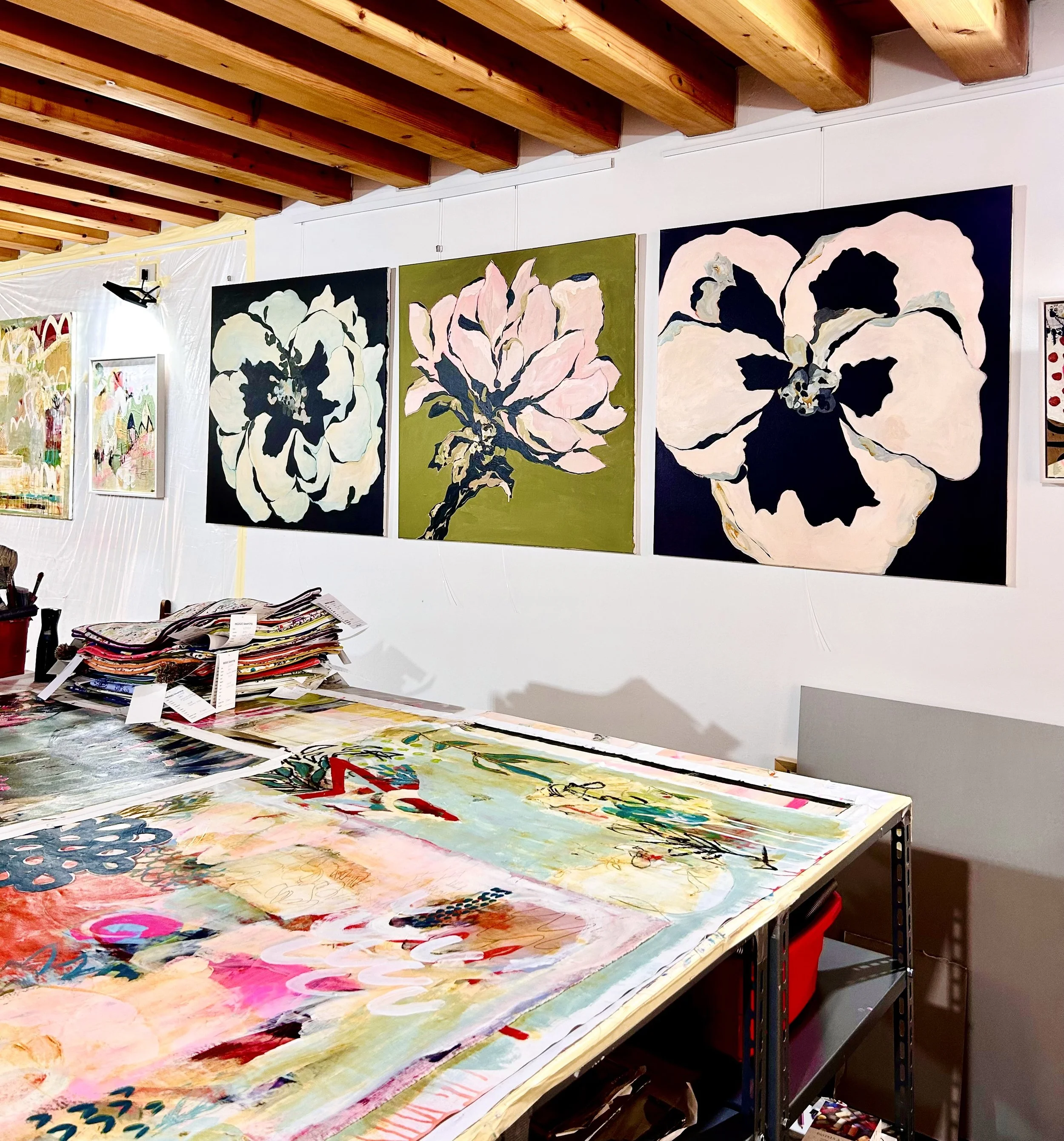 I love creating commissions — it’s a chance to design something just for you, tailored to your colors, size, and the overall feel you want in your space. A 50% deposit is required to begin, and from there we’ll collaborate to bring your vision to life with my signature style.